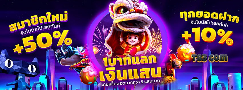 - t83th โบนัสและโปรโมชั่นจัดเต็ม: สมาชิกใหม่รับเครดิตฟรีทันที พร้อมโปรโมชั่นรายวัน รายสัปดาห์ และแจ็คพอตใหญ่ที่รอให้คุณมาคว้า